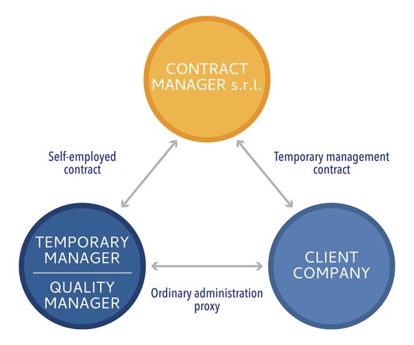 Responsibility for the quality and success of the assignment rests on Contract Manager s.r.l., which invoices the client company for its services and pays the managers involved in the temporary management assignment.